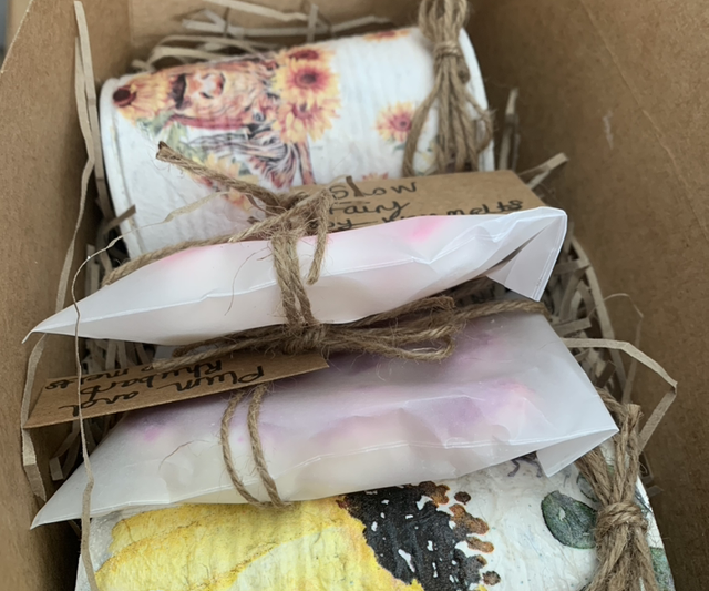 Contains two large tin can candles and two packs of soy wax melts (20 melts in total)